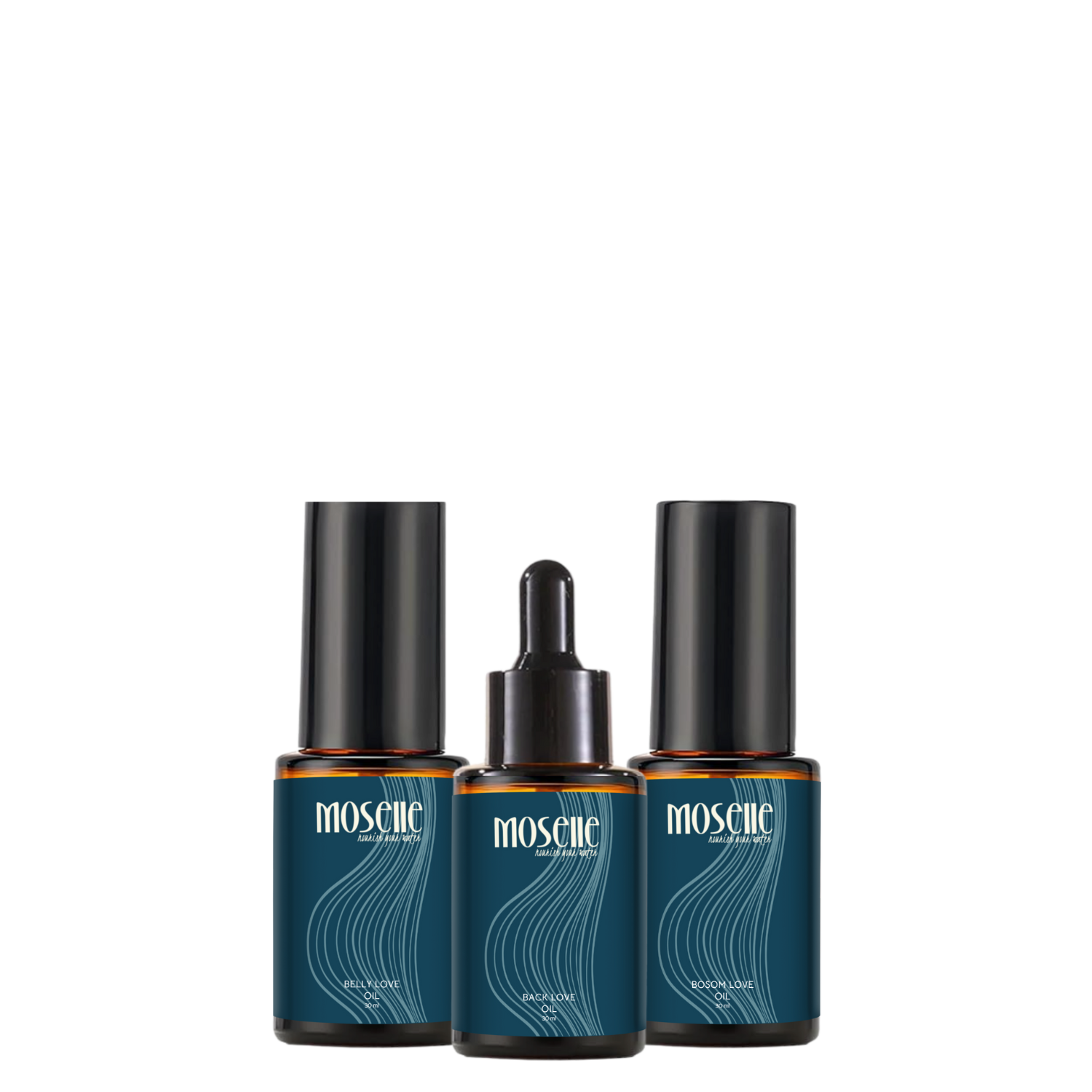 Love yourself or give love to a friend with our nourishing self-care sampler trio.  The trio includes a 30ml bottle each of the soothing Back Love Oil, uplifting Bosom Love Oil & relieving Belly Love Oil.